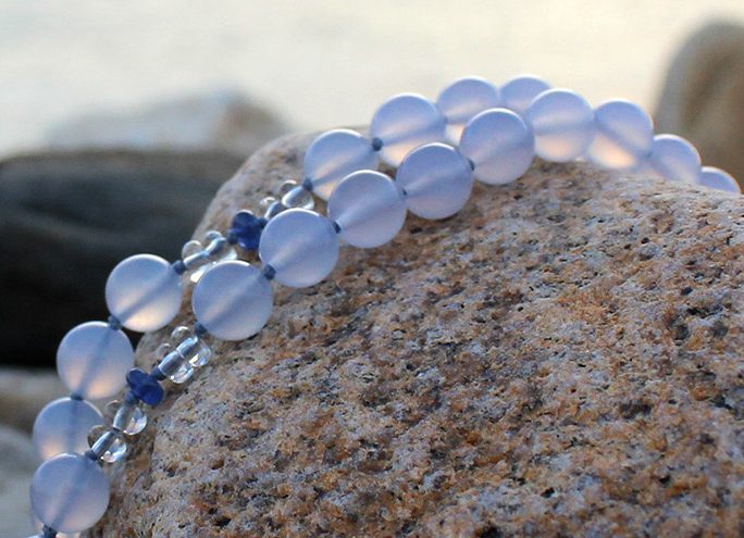 We pair Blue Chalcedony with Blue Sapphire to give the mind enough nourishment that it can relax, and with Blue Topaz to help the mind let go of anything preventing it from rest.