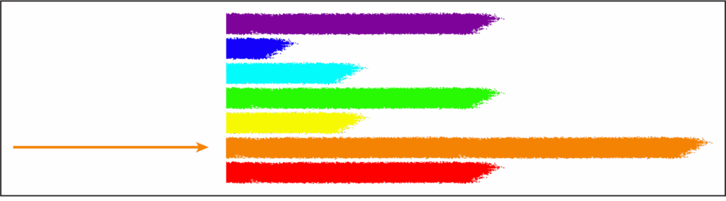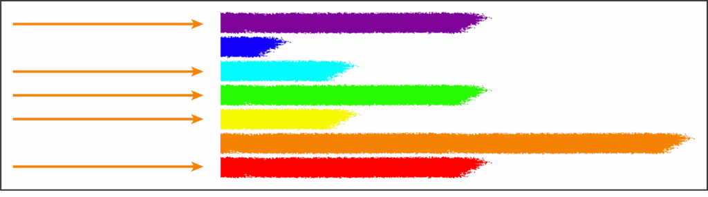 In the spectrum pictured below, the limiting ray is orange. Because there is already so much orange, there simply isn’t room for an experience with much orange in it. This is why we call it a limiting ray: it limits the types of experiences a person can call to himself.