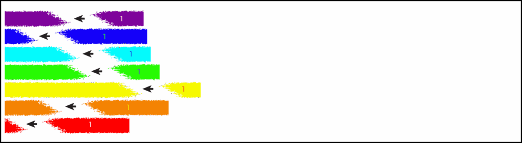 You’ll notice that the above spectrum has varying amounts of color, red being the most deficient. In the spectrum below, indigo is the most deficient. We call the ray present in least amount the primary ray.