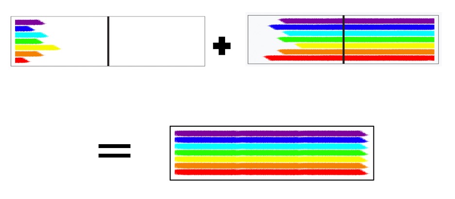 The graphic below shows a resident spectrum on the left, with a red primary ray. It is calling in an experience spectrum (right) that is rich in all colors but primarily red ray. This experience spectrum would be curative, because it fills the entire designated area of the spectrum.