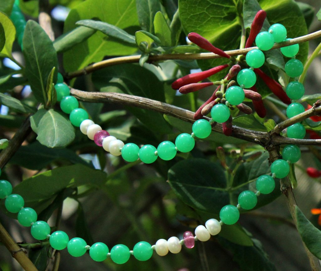 Chrysoprase is the primary gemstone in our Rising Light formula, which also contains symbiotic Pink Sapphire and Freshwater Pearl.