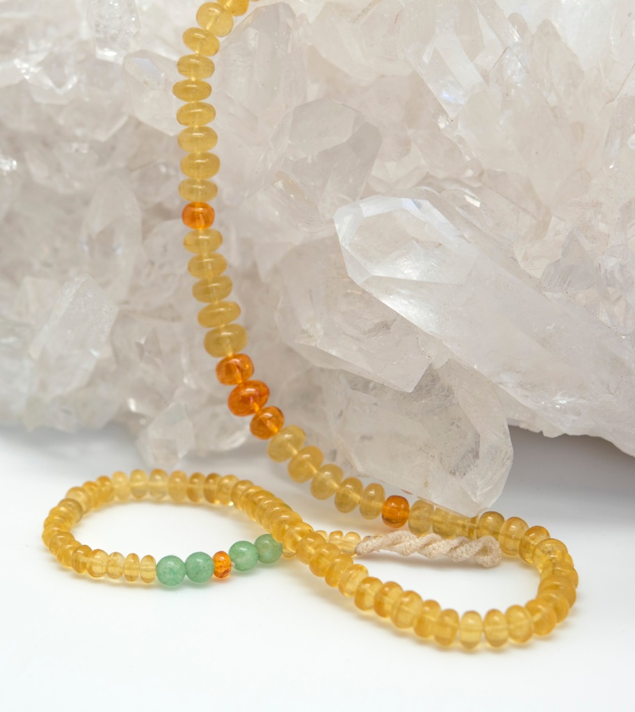 If you wore Golden Beryl by itself, past-life memories could come forward randomly and cause distractions or imbalances. Moreover, the mind can become confused if you begin to experience time circularly, as the causal body perceives it, rather than linearly, as the human mind prefers it. That’s why we recommend wearing Golden Beryl with its symbiotic stones—so that the memories that come forth are purposeful and intended.